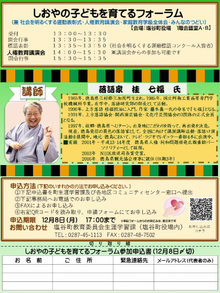 令和7年度しおやの子どもを育てるフォーラム 参加者募集‼