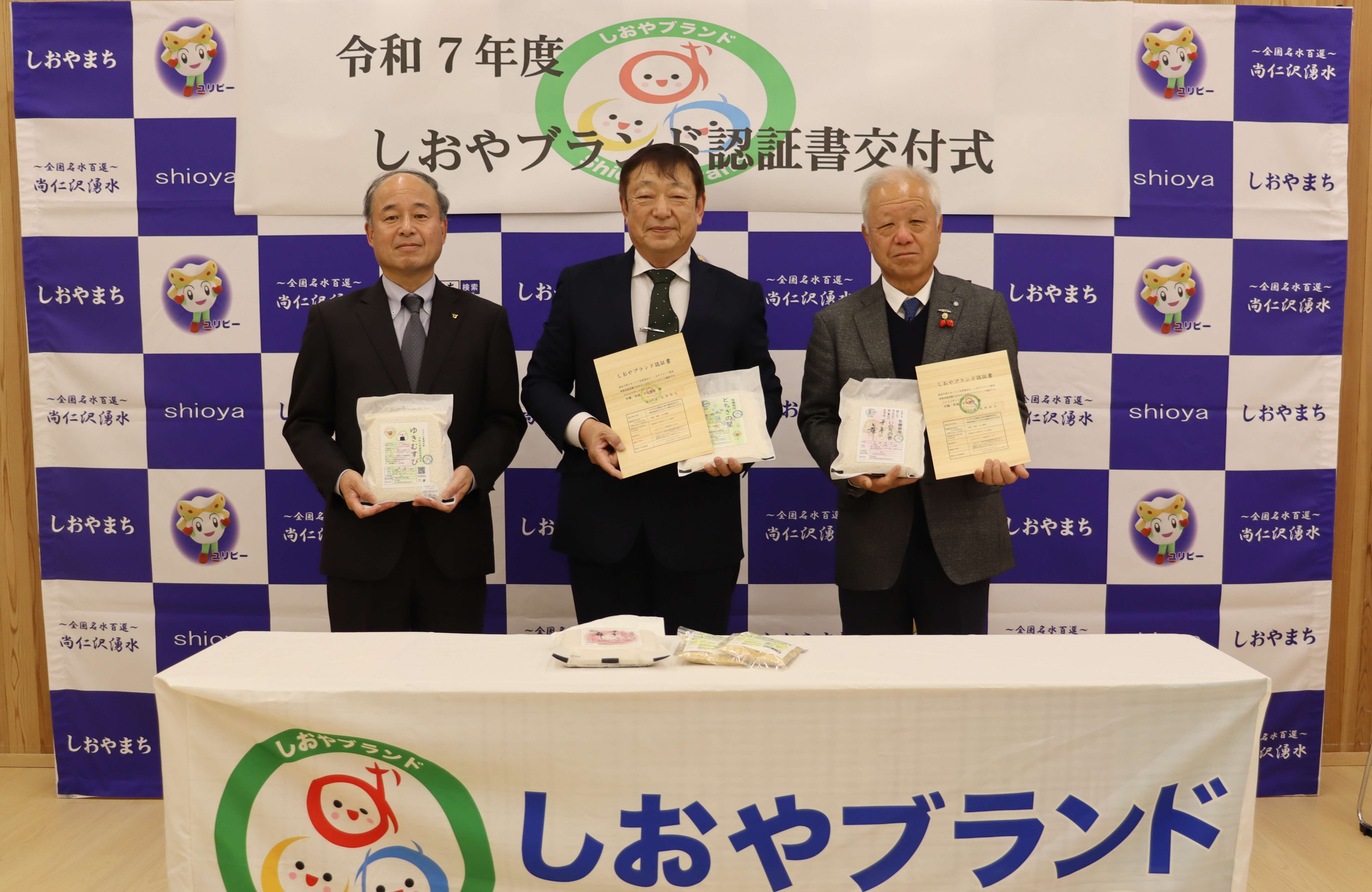 令和7年度しおやブランド認証書交付式が実施されました。
