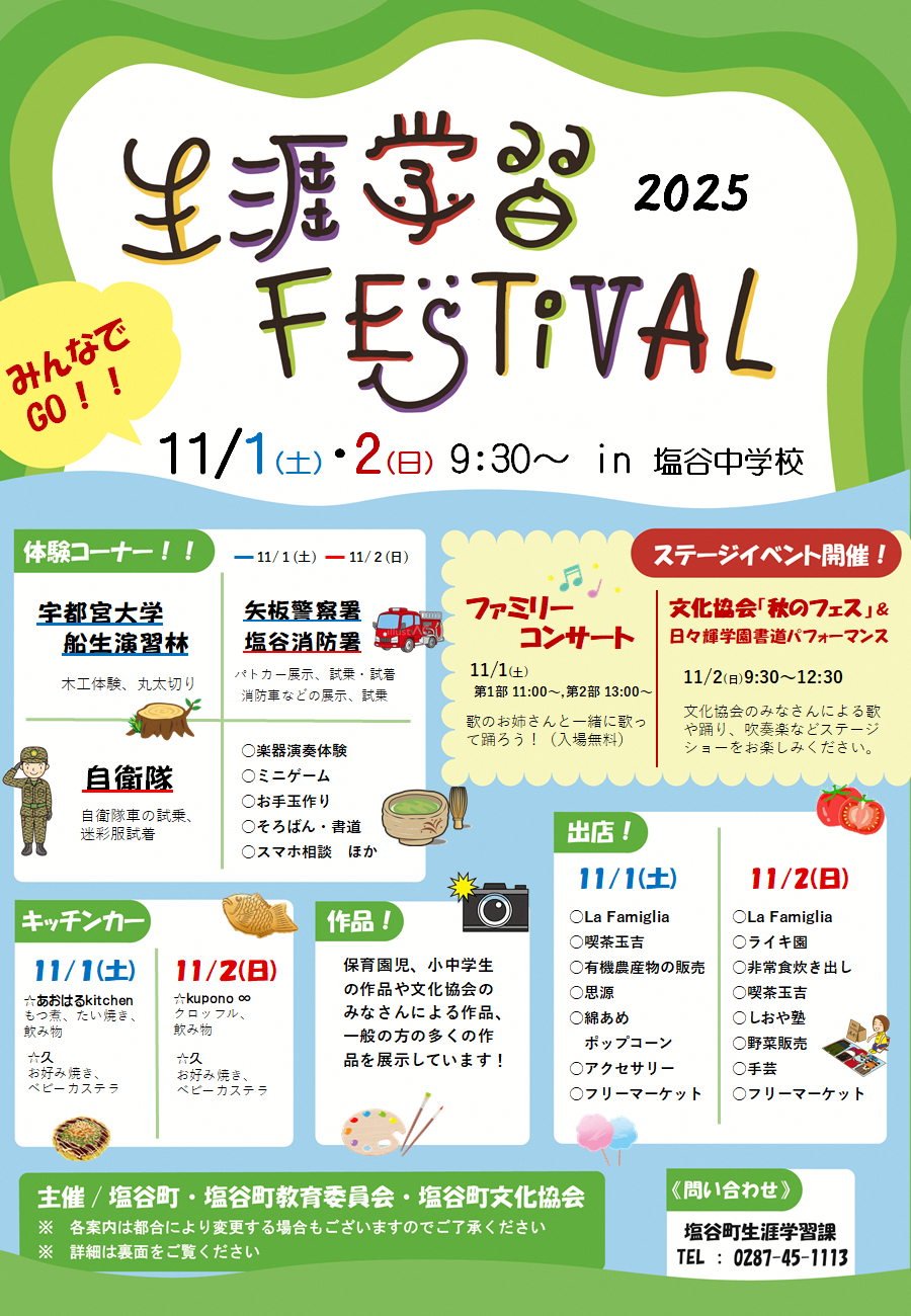 フェスティバルでは、作品展・各種ワークショップ・飲食物販・ステージイベント等を実施します☆