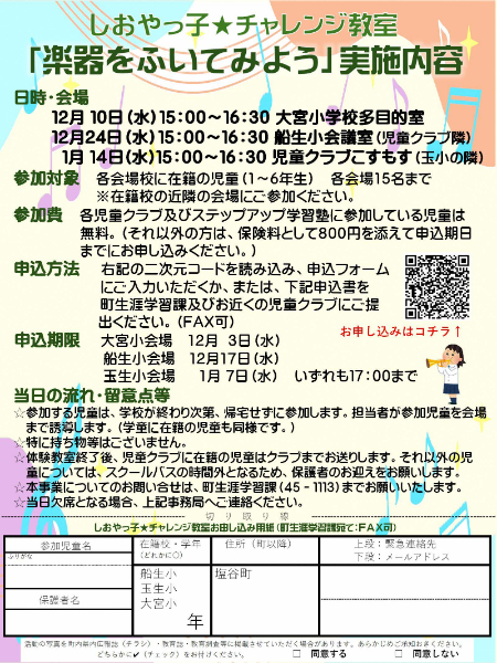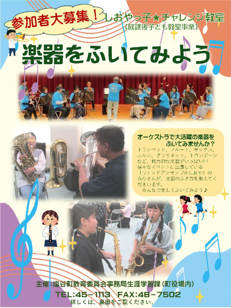 令和7年度放課後子ども教室「しおやっ子☆チャレンジ教室」参加者募集‼