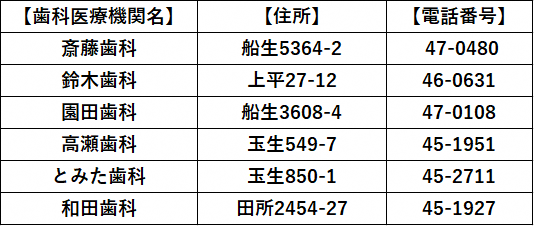 町内歯科医療機関(五十音順)